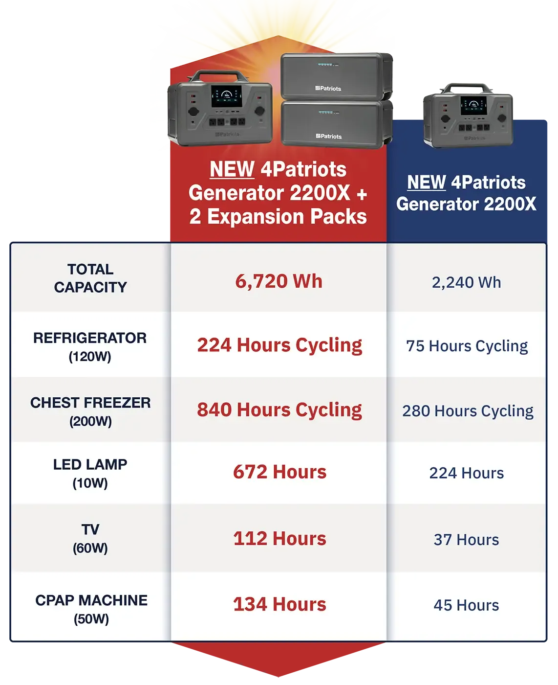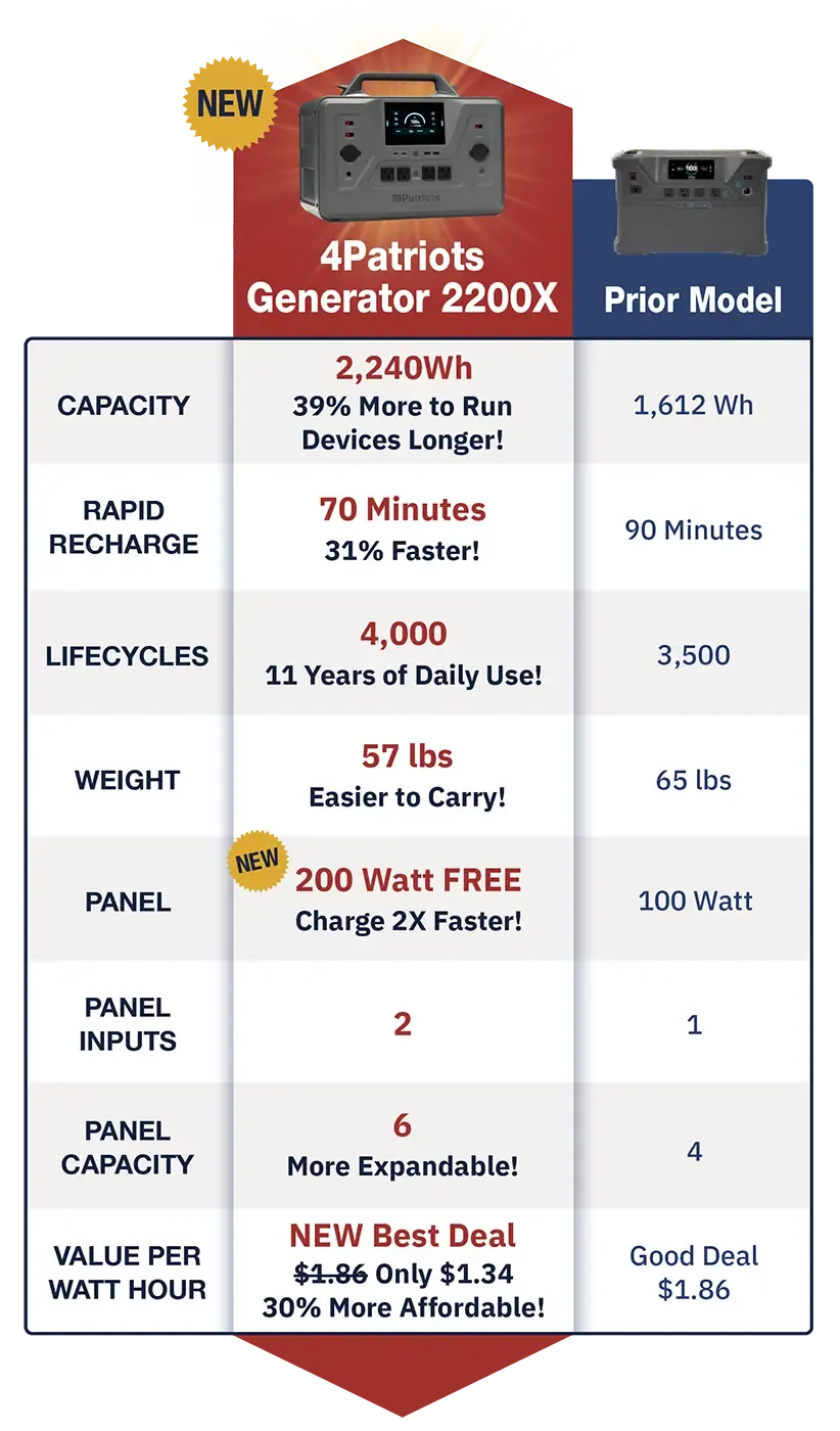 You’ve unlocked access to the NEW Patriot Power Generator 2200X: the biggest battery ever in a 4Patriots generator to run devices longer than ever before.