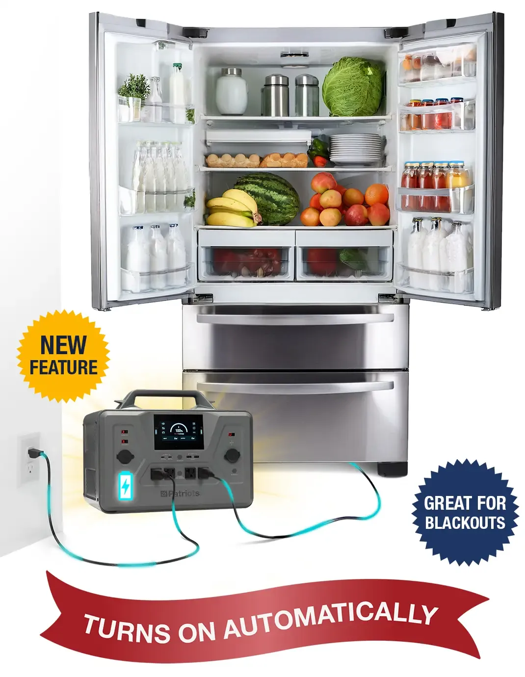 “These freezers hold thousands of dollars worth of meat. We pour our blood, sweat, tears, and love into caring for the animals on our farm. If the power goes out and we aren’t prepared, we can lose all of that hard work and money within hours. And that’s why we get real serious about our power backup. The Patriot Power Generator 2500X and Expansion Pack is super easy to use to keep your fridge and freezer running when you need it the most. Double the storage, double the run times, and double the peace of mind.”