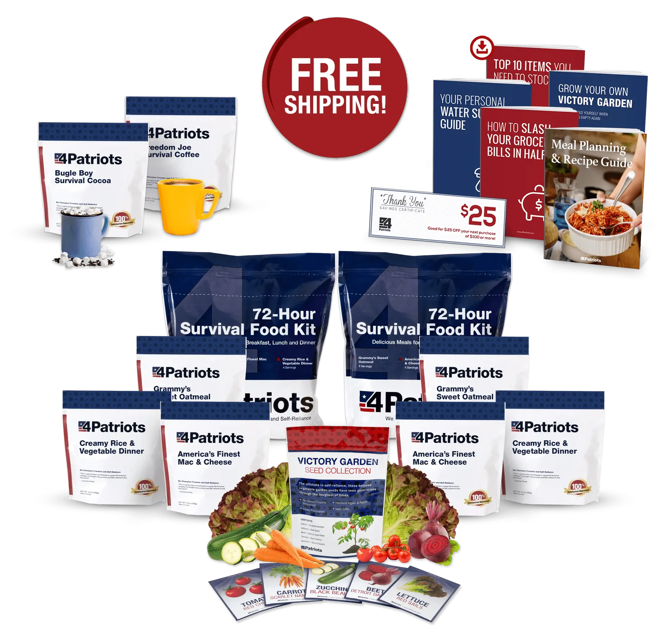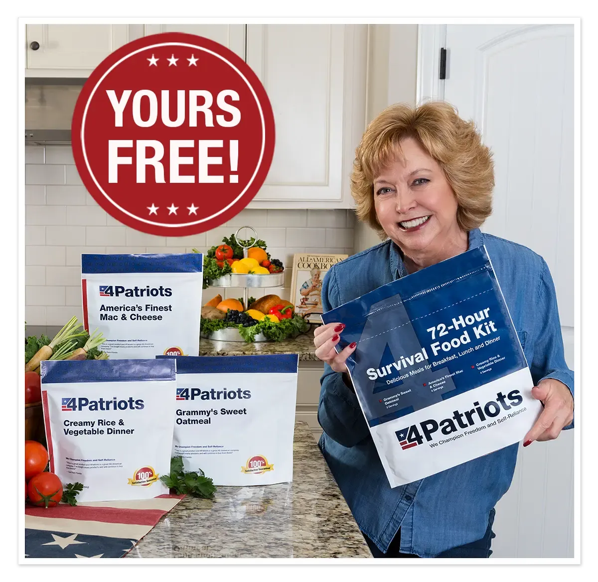 Claim your 4Patriots 3-Month Survival Food Kit and your FREE gifts now.
