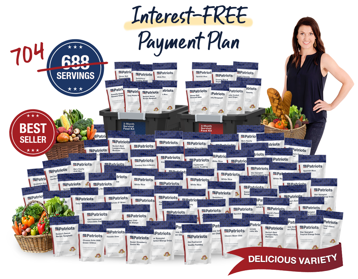 You'll get a FREE bonus gift package, including 2 NEW & Improved 72-Hour Survival Food Kits. Plus a NEW extended payment-plan option only available on this page.