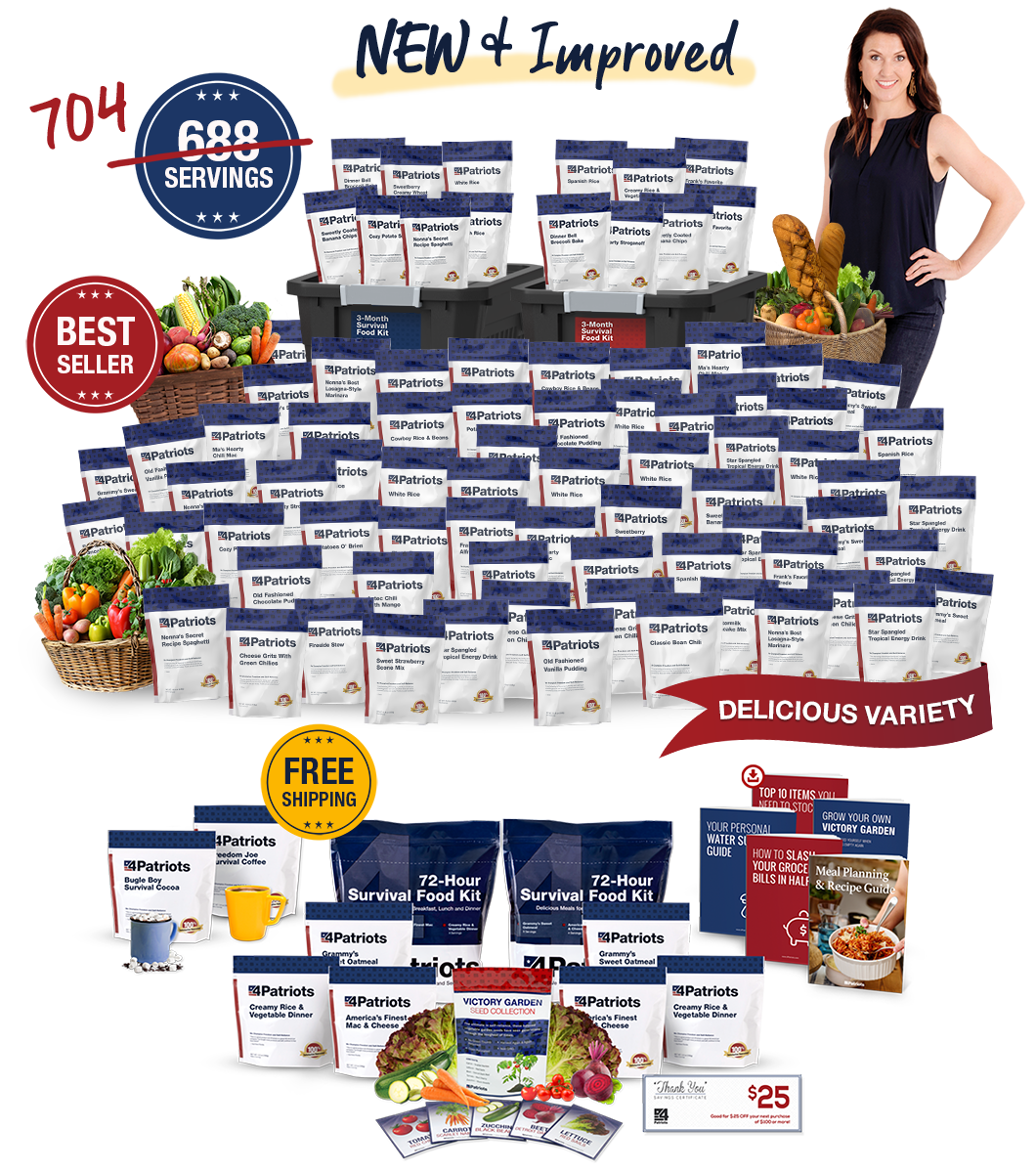 Click the orange button now to secure your NEW Deluxe 3-Month Survival Food Kit + $363.10 in FREE gifts.