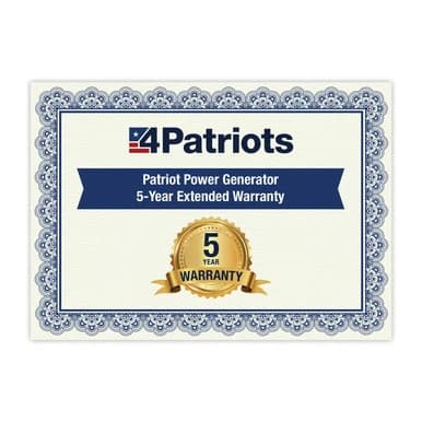 Ultimate Peace of Mind for Your New Patriot Power Generator. If you want even more peace of mind and a little extra help to make sure you get the absolute most out of your Patriot Power Generator investment, you’re going to want this… the 4Patriots Patriot Power Generator 5-Year Extended Warranty.